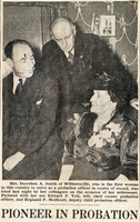 Zontian Dorothea A. Smith, the first woman probation officer in U.S. courts of record, is honored at her retirement Long-time Buffalo Zontian Mrs. Dorothea A. Smith was the first woman in the United States to serve as a probation officer in courts of record. Honoring her in retirement are (left to right): Chief County Probation Officer Edward P. Volz and Deputy Chief Probation Officer Reginald P. Medlicott