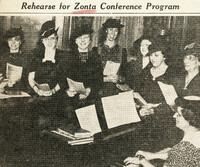 Zontians rehearse a musical number at Hotel Statler in preparation for a Zonta International Conference Buffalo Zontians, accompanied by Olive Frost on the piano, rehearse their choral numbers in preparation for the Zonta International Conference at the Hotel Statler in April 1940