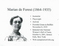 Marian de Forest (1864-1935), journalist, playwright, activist and Zonta founder Marian de Forest not only founded Zonta but served as its first president and was intimately involved with the organization for most of her life