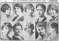 Ten directors were named to the Buffalo Zonta Directorial Board for 1929-1930 Buffalo Zonta elected ten new members to its directorial board for 1929-1930 including top (left to right): Margaret C. Beach, Mildred Cristall, Mary Gram, Dr. Edith R. Hatch, Edna K. Metcalfe and (bottom, left to right): Tess M. Sedweek, Dorothea A. Smith, Mrs. W. Nelson Wilkinson, Harriet L. Butler and Emma Millette Shaw