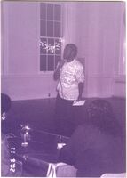 Annual Pre-Kwanzaa Dinner, 2007 Color photograph of a speaker at Black Student Union's "Annual Pre-Kwanzaa Dinner" event in the Student Union, 2007.