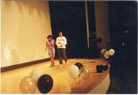 Annual Sickle Cell Auction, circa 2000s Color photograph of students on stage at Black Student Union and Alpha Beta Sigma Sorority Inc.'s "Annual Charity Sickle Cell Auction" event in the Student Union, circa 2000s.