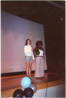 Students on stage, circa 2000s Color photograph of students speaking onstage in the Student Union Theatre at a Black Student Union event, circa 2000s.