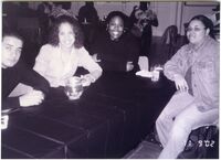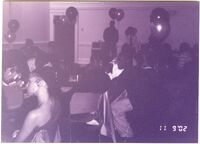 Group of students at event, 2002 Black and white photograph of group of students at Black Student Union event on South Campus in 2002.